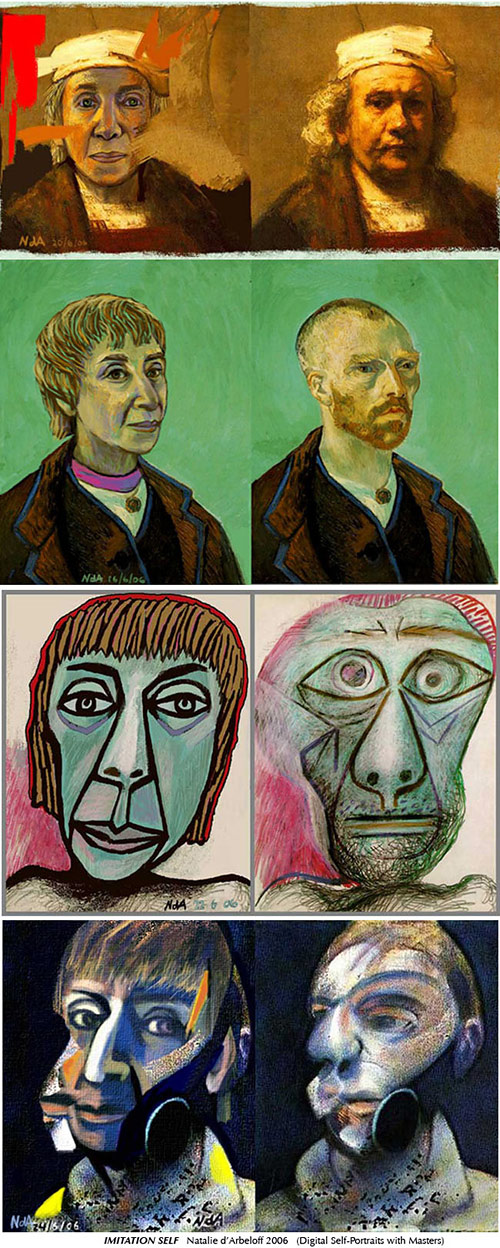 Marvelously thought-provoking work in terms of imitation but especially in terms of perspective–the artist’s perspective, the viewer’s perspective, and one’s sense of who one is as an individual. Also very funny, some of them. Cindy Sherman even comes to mind…Nice!