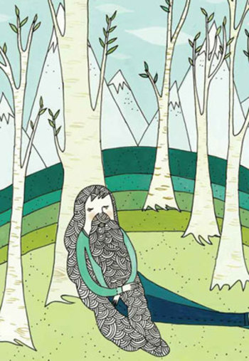 Susie Ghahremani (website) is an illustrator, musician and stuff maker who loves ice cream and finches. She attended the Rhode Island School of Design and recently moved to California. She has notecards, memo pads, stationary, and other fun things for sale at her online shoppe. This is her first appearance in qarrtsiluni.