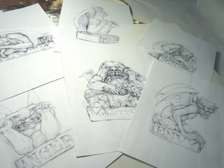 Gone for a week and came home to a pile of work and not enough time to do it. The litter pie is staying warm on the back burner until I get these gargoyles, mermaids, fairies and angels finished.