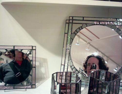 I snapped all of these reflective photos during my recent trip to Bar Harbor, and I’ve posted three of them to the Mirror Project. I am fully aware of the irony that the girl who avoided looking at herself in the mirror as a teenager, terrified of the Ugly Duckling she’d see reflected therein, suddenly feels the need to slap pictures of herself all over her blog. I’ve found, though, that taking and posting these pictures–a visual act of independence and acceptance–is more fun than therapy, and cheaper.
