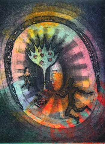 Etching from a limited edition artist’s book, The Creation from the Book of Enoch: “And Adam was five and a half hours in paradise.” by Natalie d’Arbeloff of Blaugustine.