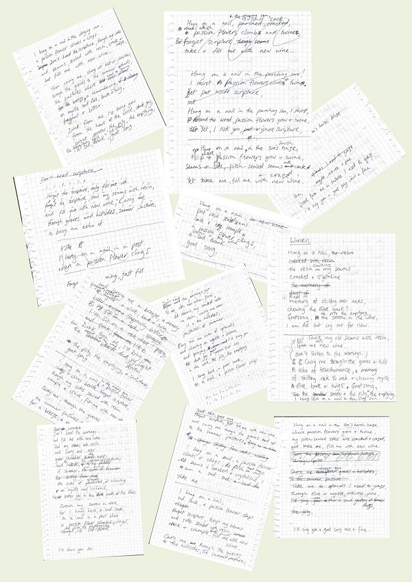 attempt something approaching what I want to achieve, get it onto the computer, and then tinker around some more: punctuation, line breaks, word changes… One has to stop somewhere.