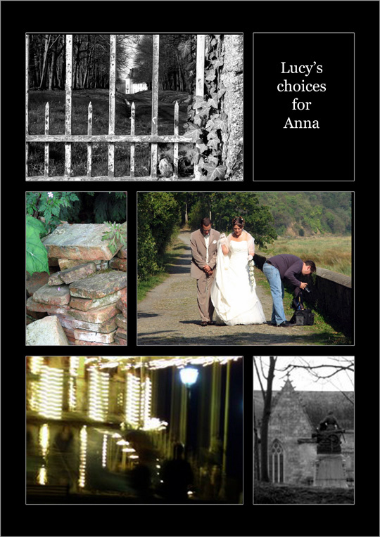 Then I added the odd, quickly taken shot of the bride and groom in formal wedding dress, whom I’d seen being photographed in an area of quite lonely, empty coastal marshland, a place which seemed a strange, slightly surreal choice for this. I had kept the picture, feeling it had some potential I couldn’t quite identify, and threw it in at the last minute for Anna as a kind of wild card. I’m glad I did.