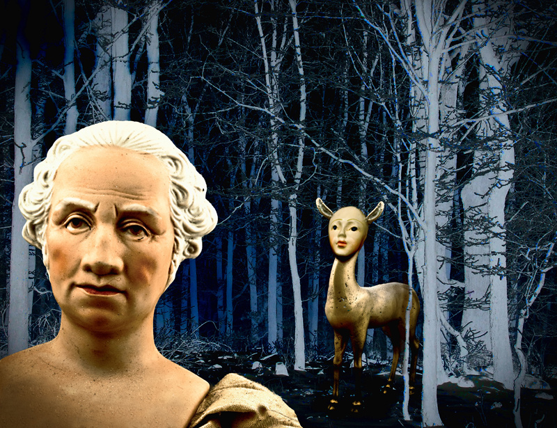 I feel that my love for poetry with its fragments of imagery leads me to be a collector by nature, somehow, and then to place the disparate things I’ve discovered into a box assemblage, or digital collage, in presentation, a sort of hominoid bowerbird posing bits of blue and shiny objects it has gathered within a frame of bundled twigs. I am attracted to lovely, mostly used, distressed, castaway objects and images that I find in thrift stores, on streets, in basements, forests, yard sales, and unexpected places.