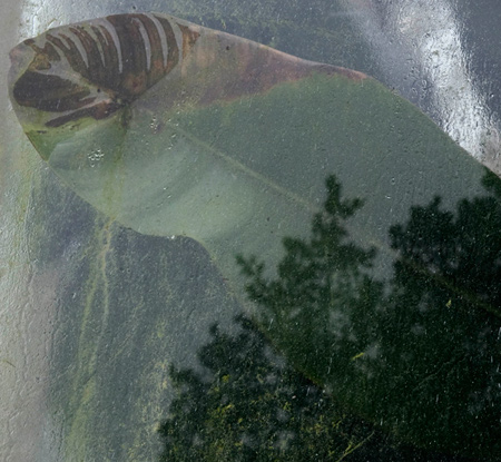 This decision proved fruitful. From the outside looking in, Steve found and photographed leaves and reflections. Pam was intrigued by the way exotic plants seemed to clamor for escape, and by the layering of cityscape and Edenic scenery. Our stumbling block had become a platform for collaboration.
