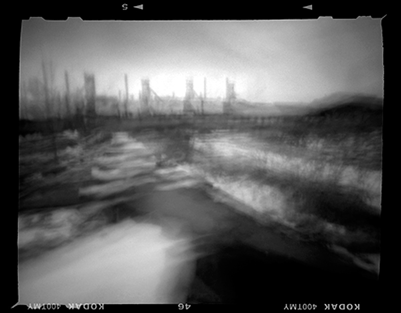 These black-and-white pinhole photographs show how the iconic Bethlehem (Pennsylvania) steel plant — “The Steel” to those who worked there — appeared in 2005. The sprawling complex sat dark, rusting and abandoned behind chain link fencing.