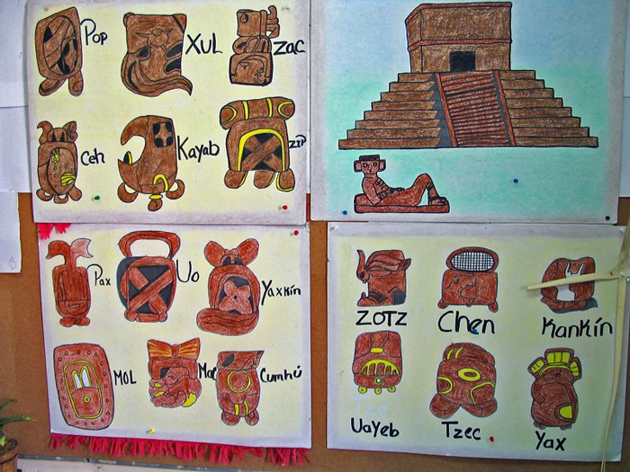 Walking in Merida one day, wandering into a neighborhood, I was attracted by a very old looking church there. Opposite it was a Mayan language school. Seeing the poster at the entrance to the school was as a Eureka! to me. There it was, a connection between the mysterious ancient Maya and the largely colonial Spanish city of today, and the young students learning to read the glyphs that they may translate the old symbols into a spoken language, themselves the concrete sign that the Mayan culture remains vibrant today, their heritage a direct connection to the the pyramids.